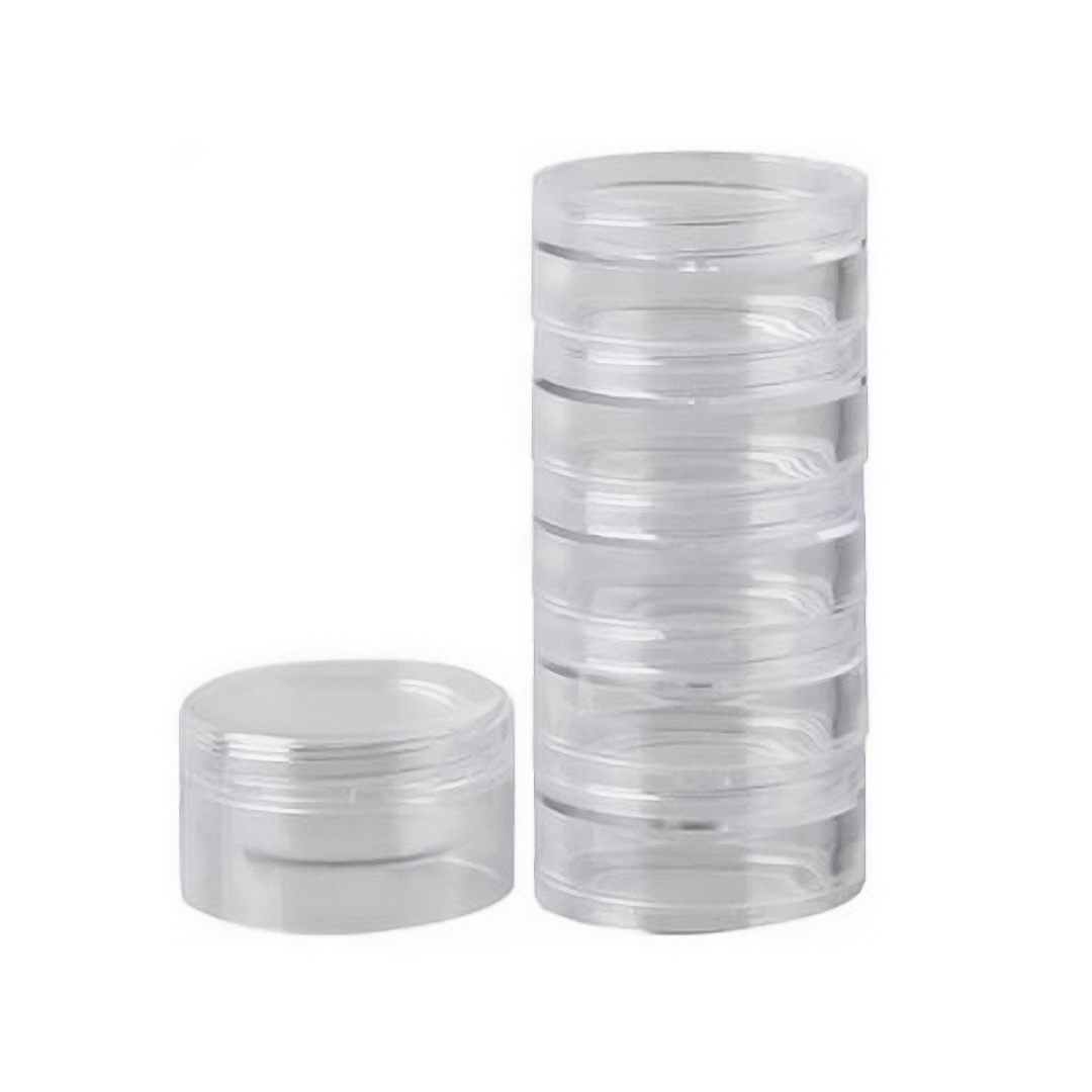 - Torre em potinhos com capacidade para 4 gramas cada. São rosqueáveis e ideais para armazenamento de pós, glitter e semelhantes.